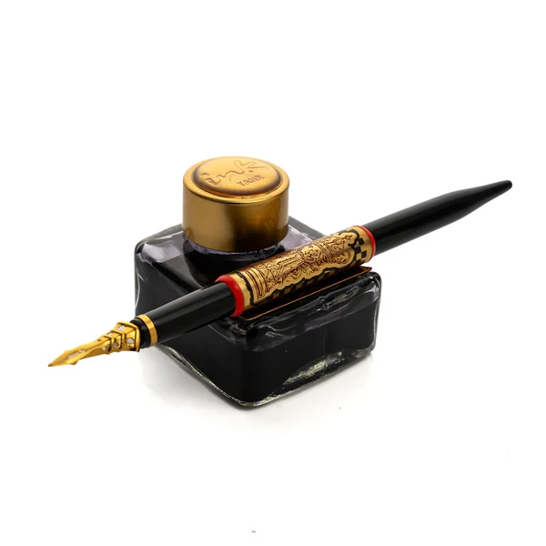 The pen body is glossy epoxy resin while the barrel is brass electro plated with a satin rose gold finish. Ideal to create a look for your desk, these holder dip pens offer smooth writing and holds enough ink to write an entire sentence. An ornate ink tank accompanies these pens, which also acts as a stand. The base has a clear acrylic top with a chess board motif and a black bottom and completes this set of chess inspired pens.